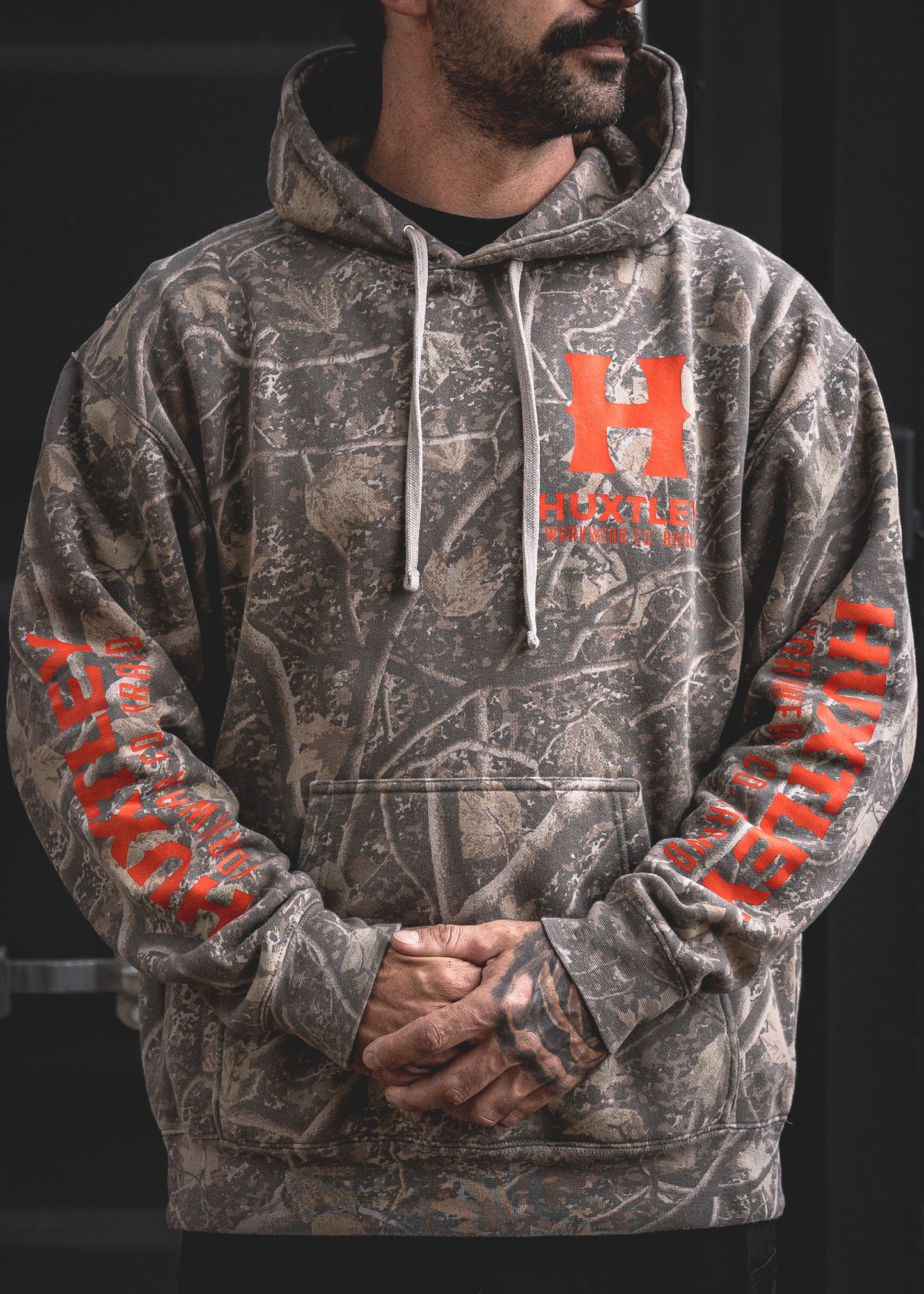 HX-717 Heavyweight Hoodie "Full Print" Deadwood Camo/ Neon Orange
