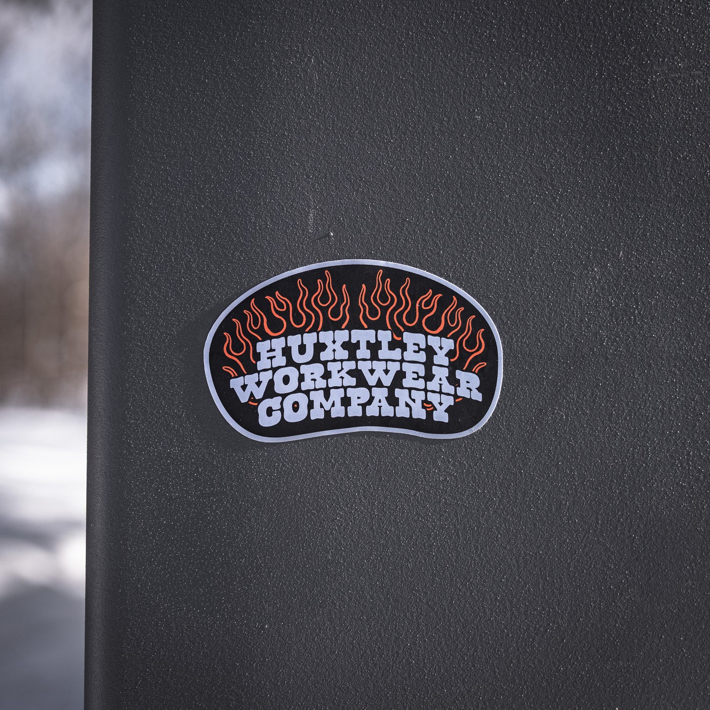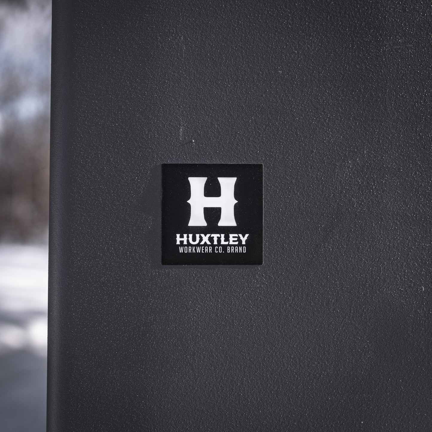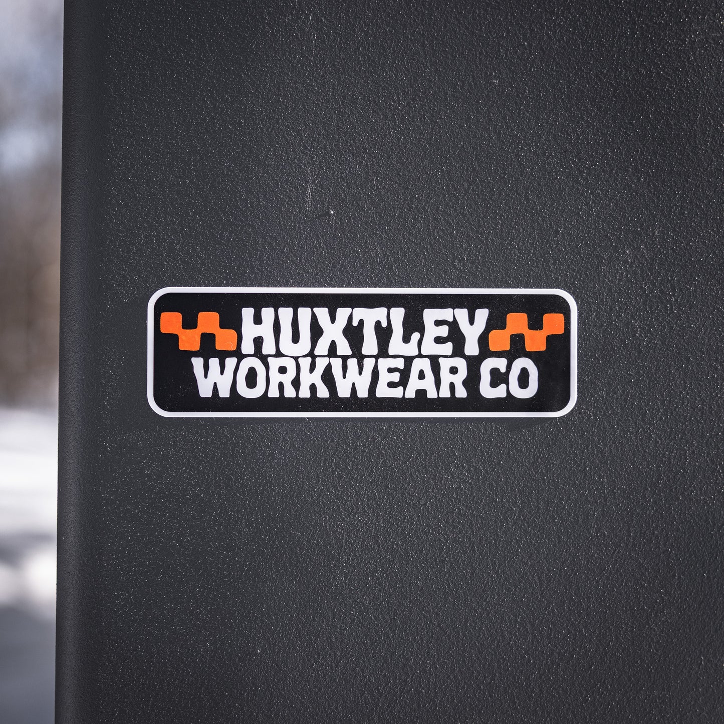 Représente Huxtley Workwear Co. en applicant des stickers partout!!